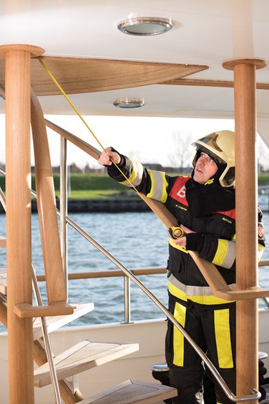 De ene dag werkt hij op de grootste jachten ter wereld, het volgende moment blust hij een brand in zijn geliefde dorp Makkum. Een mooie match, volgens Ruurd Cuperus. ‘Veilig en optimaal werken als team. Dát staat bij beide voorop.’
