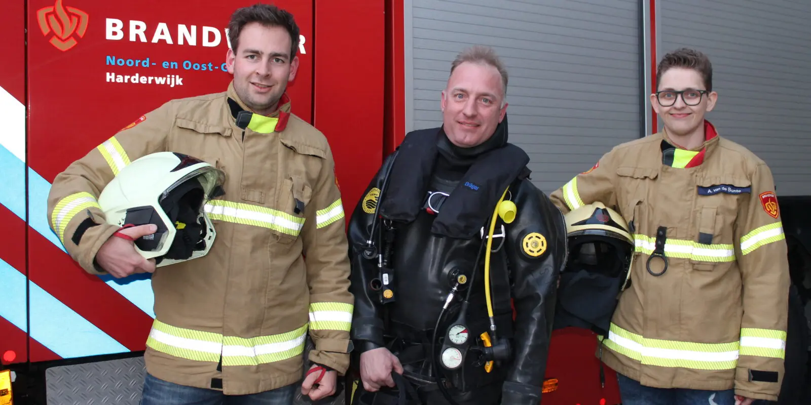 “En als je dan eenmaal bij ons korps zit dan kom je er al gauw achter dat we een heel leuk stel mensen zijn”, vertelt een trotse Willem. “Het sociale aspect telt erg mee en je leert snel nieuwe mensen kennen, je hebt er meteen nieuwe vrienden bij. En ook wat betreft carrièremogelijkheden bij ons korps zit het wel goed. Je begint als manschap maar je hebt ook altijd de mogelijkheid om door te groeien naar chauffeur, hoogwerker bedienaar, duiker of schipper. Want omdat Harderwijk grenst aan een waterrijk gebied hebben we ook incidenten op en bij het water, hiervoor hebben we de brandweerboot en duikers die dan assisteren.”