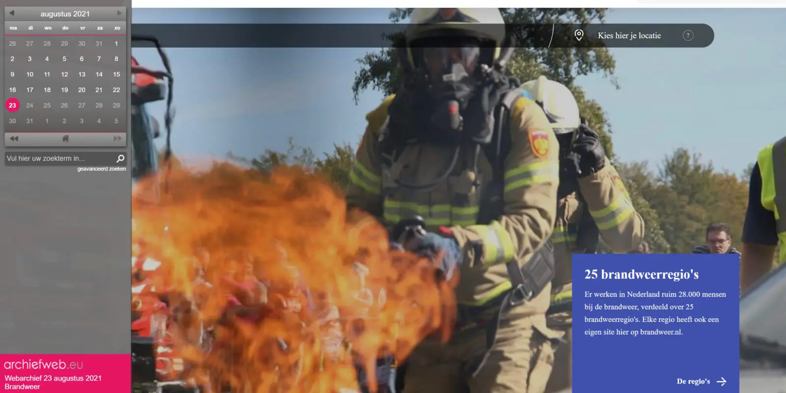 Heb je niet gevonden wat je zocht? Onze website brandweer.nl wordt iedere dag gearchiveerd; op de website van Archiefweb kun je altijd pagina’s die nog niet overgezet zijn of eerdere versies van pagina’s terugvinden.